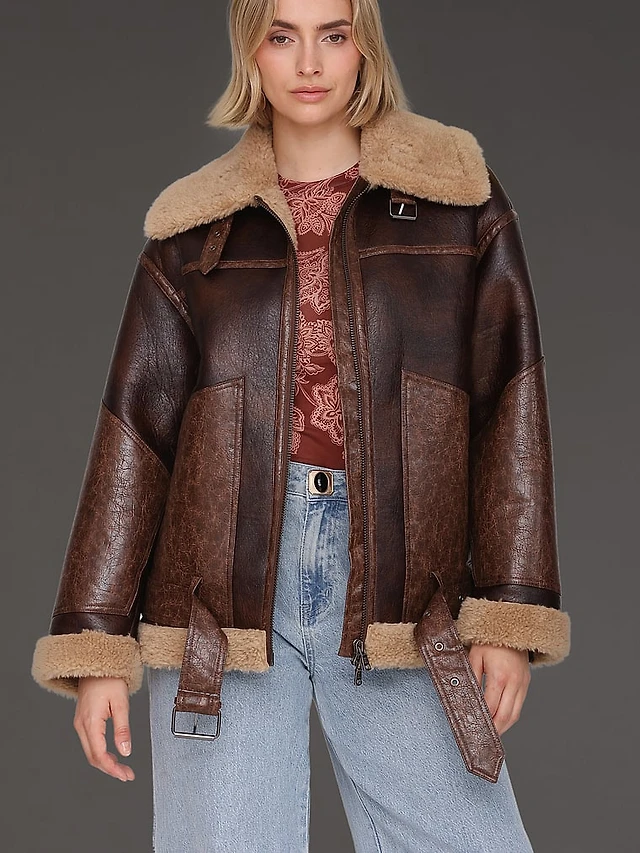 Cropped Shearling Aviator Jacket in Dark brown - Women, Suede | Burberry® Official