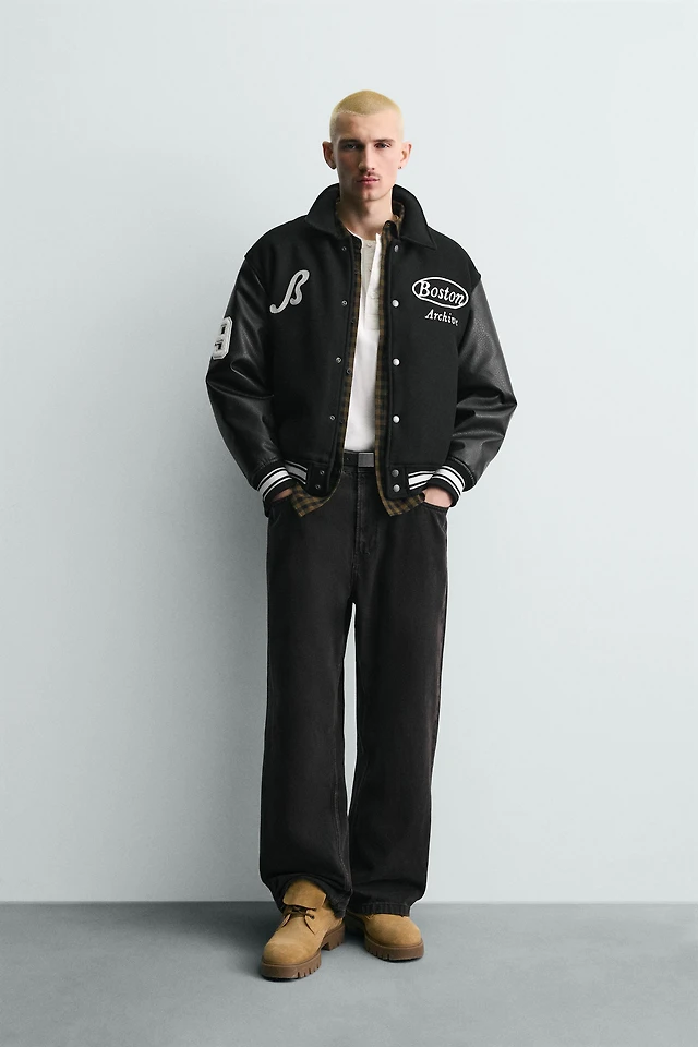 Xray Boy's Wool Varsity Bomber Jacket With Grainy Pu Sleeves