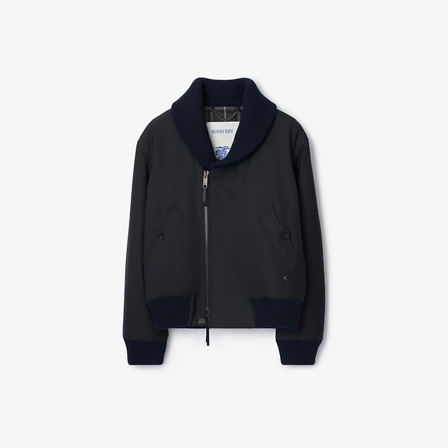 Wool Blend Bomber Jacket in Navy - Men, Nylon | Burberry® Official
