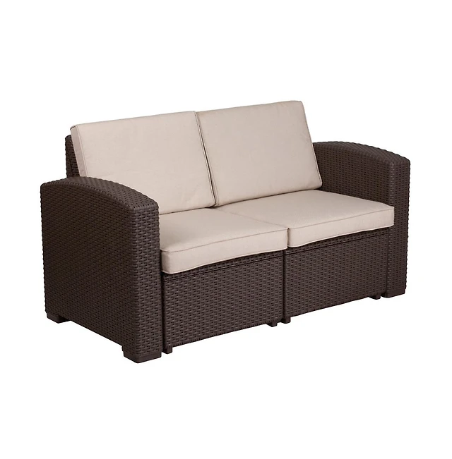 Palm Harbor 2 Piece Outdoor Wicker Seating Set With Cushions- Loveseat And Glass Top Table