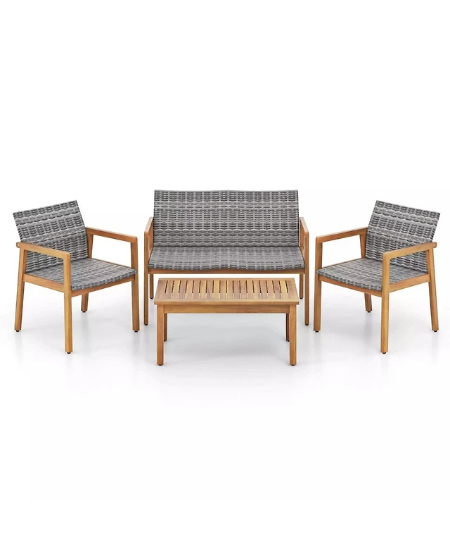 4PCS Patio Rattan Wicker Furniture Set Brown Loveseat Sofa