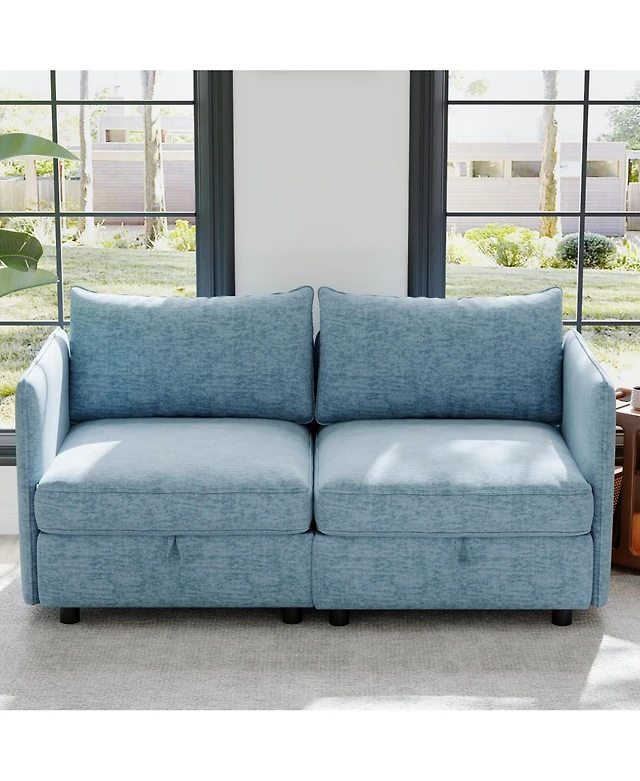 Streamdale Furniture Teddy Upholstered Loveseat Sleeper Sofa - Dark Blue