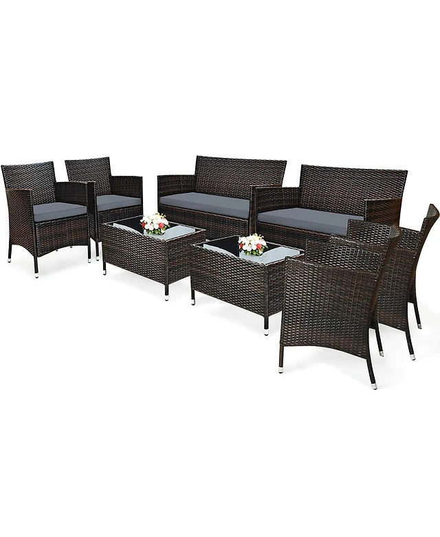 Sugift 4 Pieces Patio Furniture Set with Armrest Loveseat Sofas and Glass Table Deck