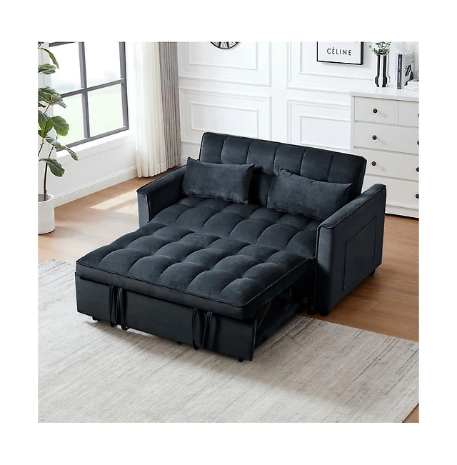 Streamdale Furniture Black Leather Double Folding Sofa Bed & Table
