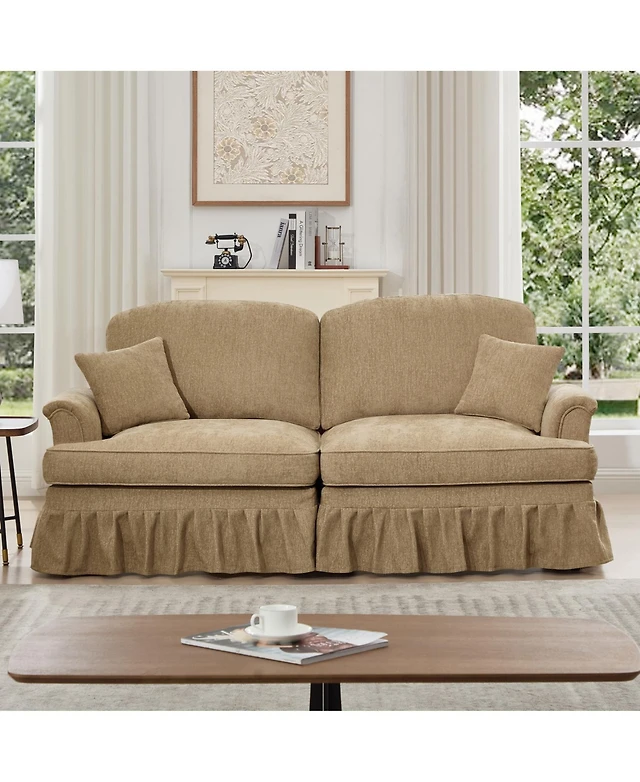 Streamdale Furniture Streamdale Curved Boneless Sofa Loveseat, 2-Seater Orange Chenille Compression Couch with 3 Pillows