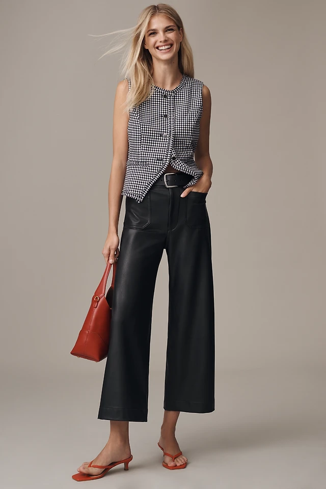 Kenneth Cole Women's Faux Leather High Rise Pintuck Culotte