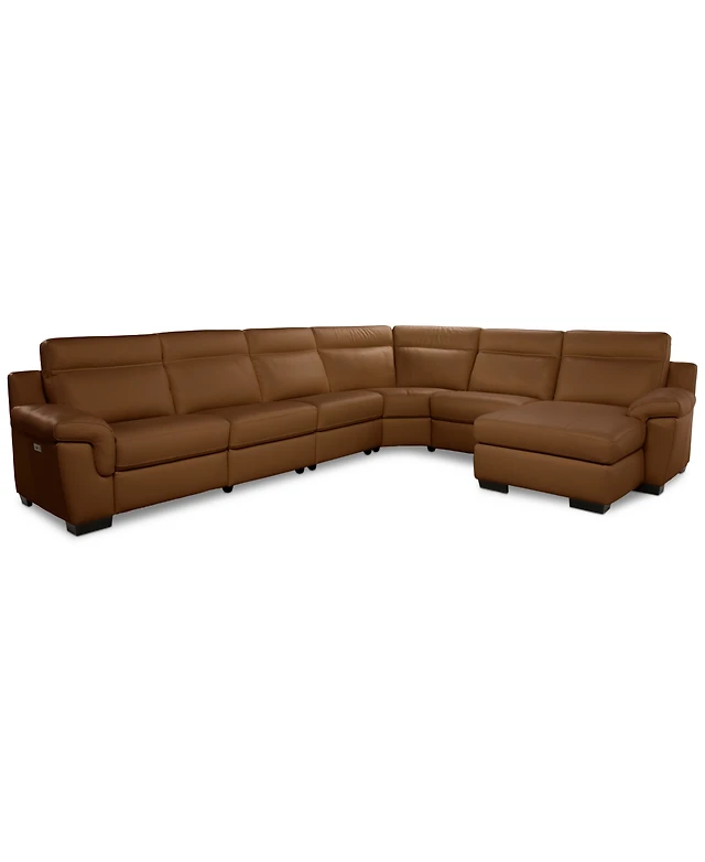 Nevio 157" 6-Pc. Leather Sectional with 1 Power Recliner, Headrests and Chaise, Created For Macy's