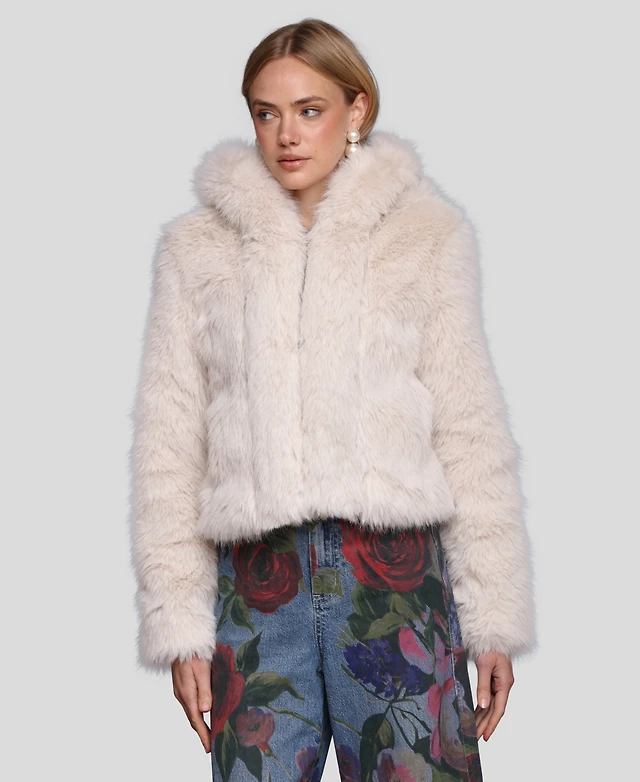 White Mark Women's Removable Furry Hoodie Bomber Leather Jacket