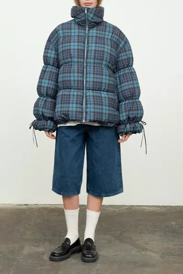 Moon River Plaid Oversized Puffer Jacket