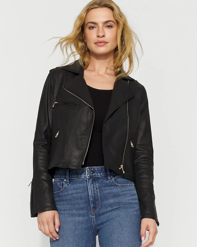 Andrew Marc Women's Felix Asymmetrical Moto Jacket With Wing Collar