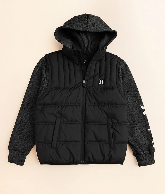Olsen Women's Zip Front Mixed Media Hooded Jacket
