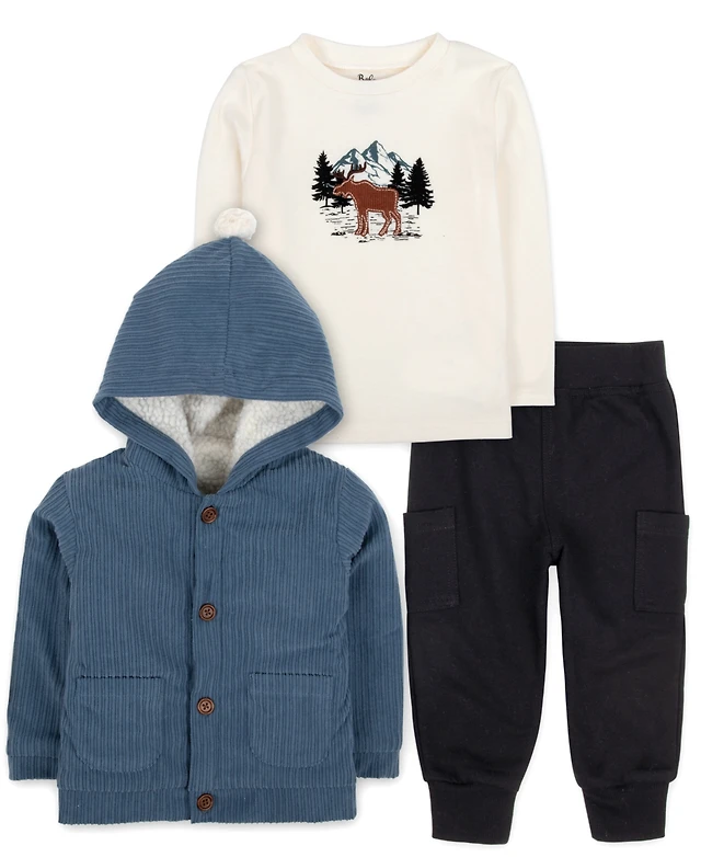 Little Me Baby Girls Corduroy Jacket, T-Shirt & Denim Pants, 3 Piece Set
