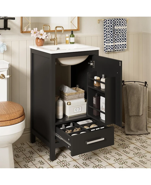 Sillysis 20" Bathroom Vanity with Ceramic Sink, Modern Freestanding Mdf Cabinet, Storage Rack Drawer Soft Close for Small Space