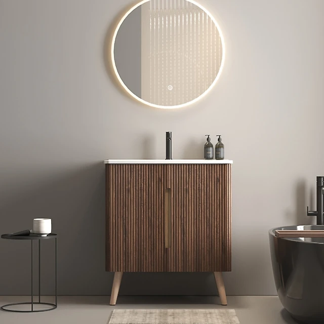Bron 24" Freestanding Bathroom Vanity in Brown Oak with Sink Top