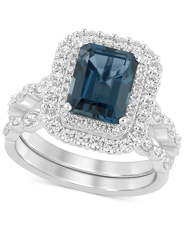 1/2 CT. T.w. Enhanced Blue and White Diamond Vintage-Style Frame Bridal Set in 10K White Gold