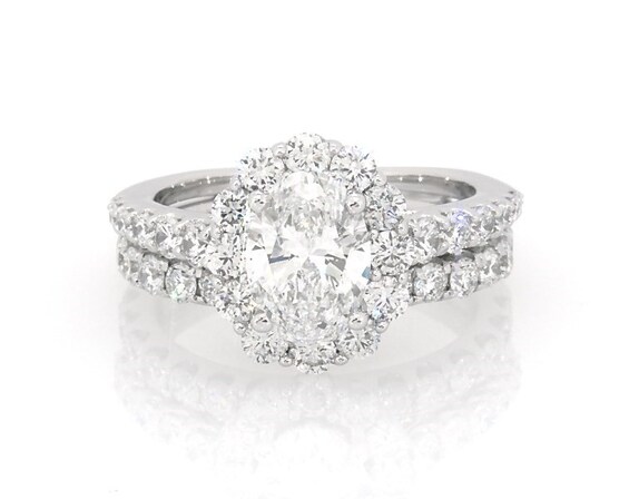 Previously Owned Neil Lane Oval-Cut Diamond Double Halo Bridal Set 1-1/2 ct tw 14K White Gold Size 5.75