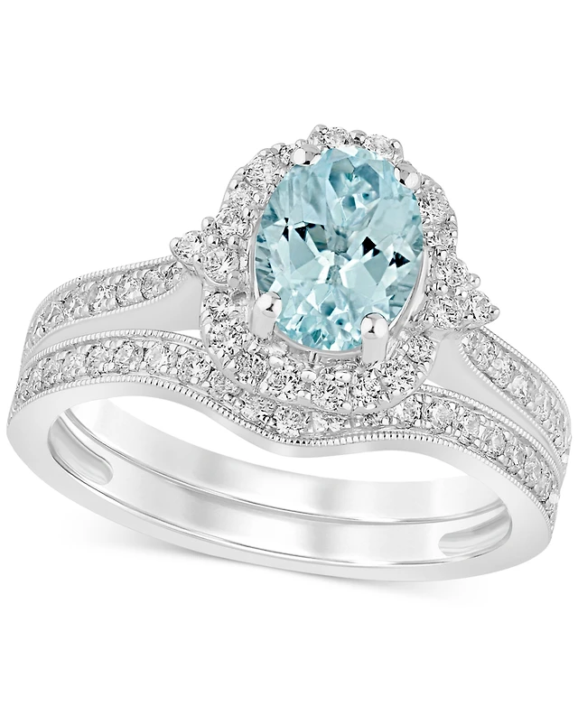 6.0mm Aquamarine and 3/8 CT. T.w. Diamond Double Frame Bridal Set in 14K White Gold