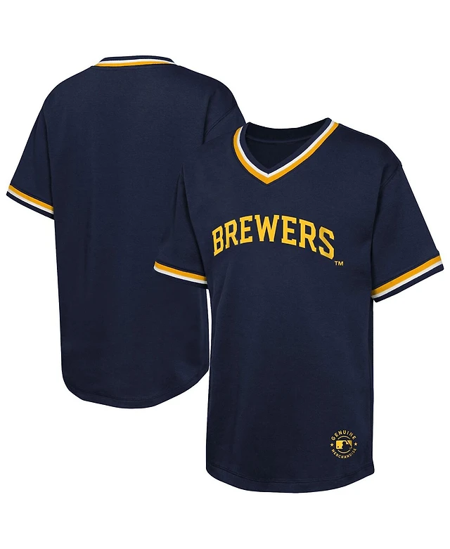 Outerstuff Big Boys and Girls Navy Milwaukee Brewers Relief Pitcher V-neck T-Shirt