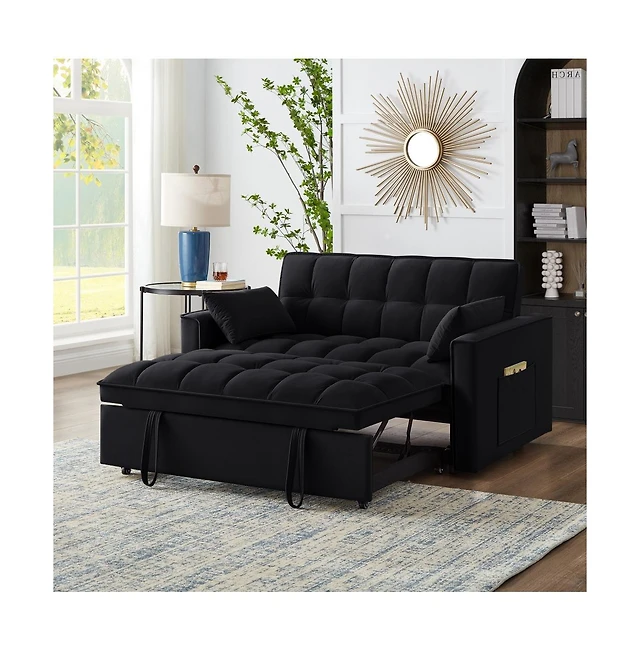 Streamdale Furniture 3 in 1 Convertible Sleeper Sofa Bed, Modern Pull Out Couch Bed, Adjustable Backrest, Velvet Loveseat Futon Sofa with Pillows & Po