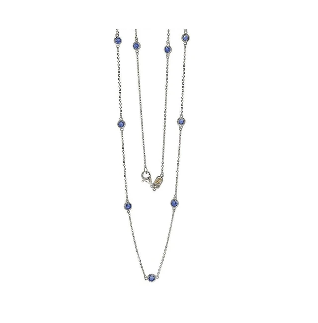Suzy Levian New York Sterling Silver Sapphire & Created White Double Circle Eternity Pendant Necklace