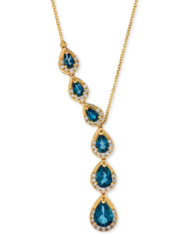 Effy Collection Diamond (1/20 ct. t.w.) & Multi Blue Topaz (5-7/8 ct. t.w.) Pendant Necklace in 14k Yellow Gold