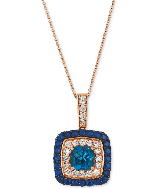 Le Vian Deep Sea Blue Topaz (1-1/2 ct. t.w.), Blueberry Sapphire (7/8 ct. t.w.) & Nude Diamond (1/2 ct. t.w.) Cushion Halo Adjustable 20" Pendant Neck