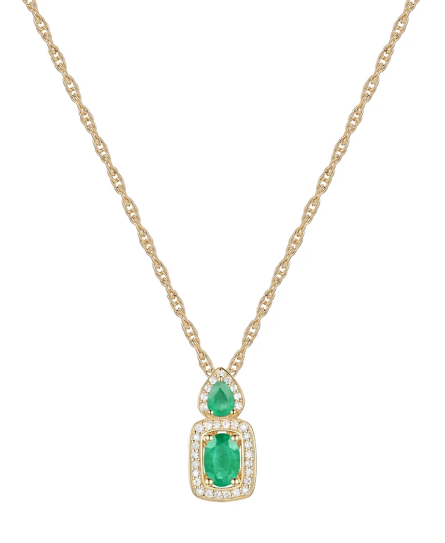 Cultured Freshwater Pearl (9mm), Emerald (1/2 ct. t.w.) & Diamond Accent 18" Pendant Necklace in 14k Gold