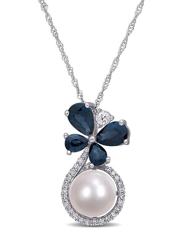 Cultured Freshwater Pearl (7mm) & Diamond (1/20 ct. t.w.) Vine 18" Pendant Necklace in Sterling Silver