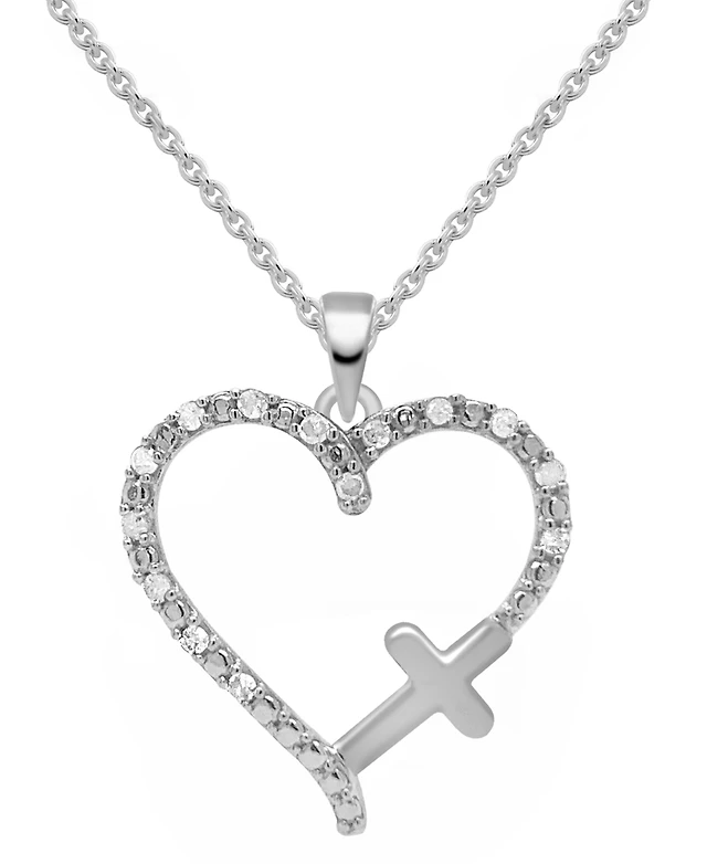 Diamond Owl Heart 18" Pendant Necklace (1/10 ct. t.w.) Sterling Silver or & 14k Gold-Plate
