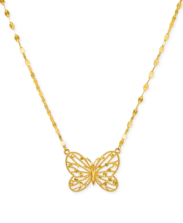 Wrapped Diamond Accent Butterfly 17" Pendant Necklace 14k Yellow, White or Rose Gold, Created for Macy's