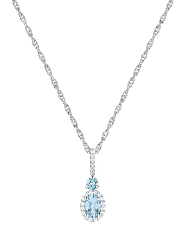 Aquamarine (1/2 ct. t.w.) & Diamond (1/8 ct. t.w.) Halo 18" Pendant Necklace in Sterling Silver (Also in Opal)