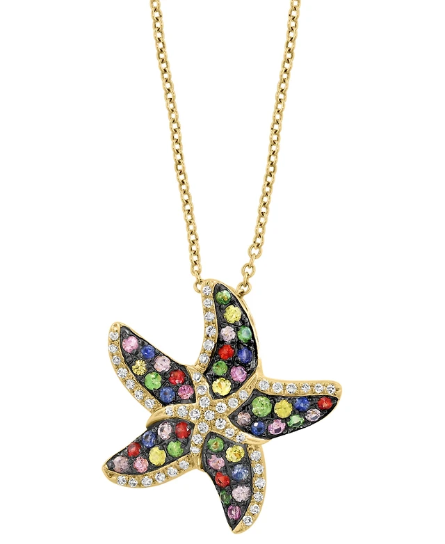 Effy Multi-Sapphire (3/4 ct. t.w.), Green Garnet (1/6 ct. t.w.) & Diamond (1/2 ct. t.w.) Cross 18" Pendant Necklace in 14k Gold