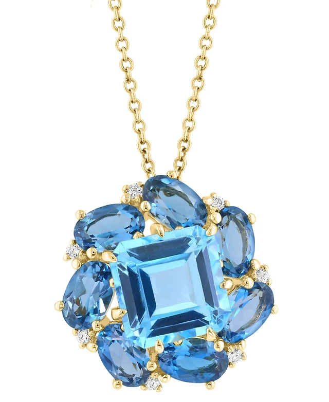 Effy Collection Diamond (1/20 ct. t.w.), Blue (2-3/4 ct. t.w.) & London Blue Topaz (1 ct. t.w.) Pendant Necklace in 14k Yellow Gold
