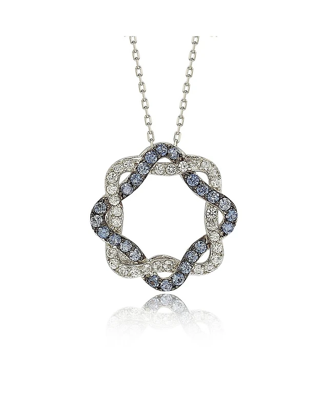 Oval Lab-Created Blue Sapphire and Diamond Accent Cascading Open Flame Pendant in Sterling Silver
