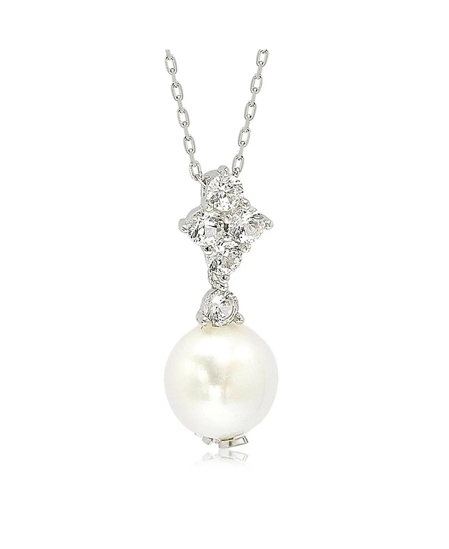 Imperial® 8.5-9.0mm Freshwater Cultured Pearl and Diamond-Cut Bead Drop Pendant in 14K Gold