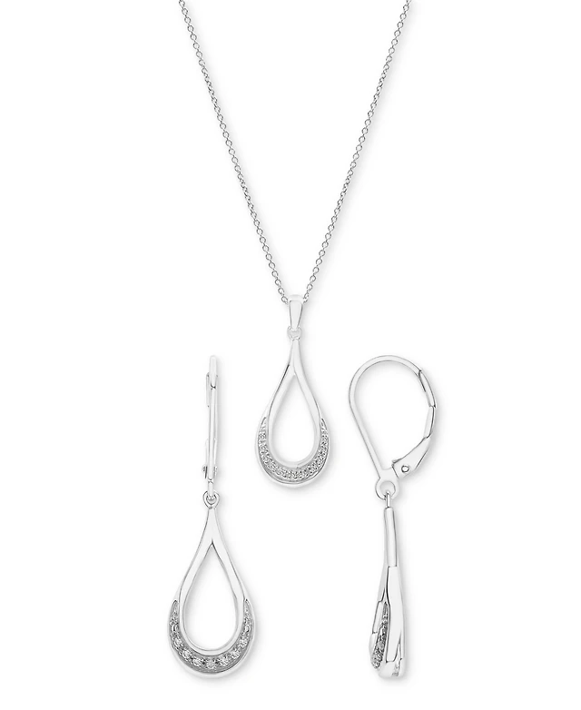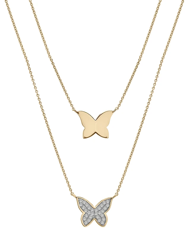 Effy Diamond Round & Baguette Double Heart Pendant Necklace (1/4 ct. t.w.) in 14k White Gold, 17-1/2" + 1/2" extender