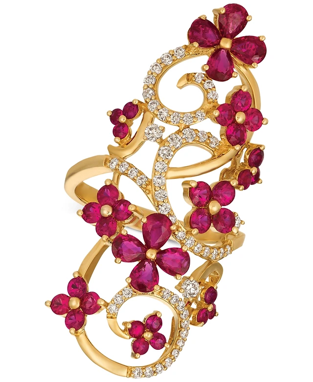 Le Vian Multicolor Sapphire (1-5/8 ct. t.w.) & Nude Diamond (1/8 ct. t.w.) Flower Statement Ring in 14k Rose Gold
