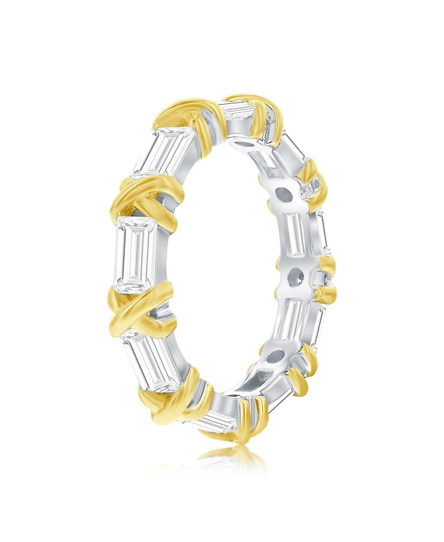 Suzy Levian Sterling Silver Baguette Cubic Zirconia Yellow Gold X Eternity Band
