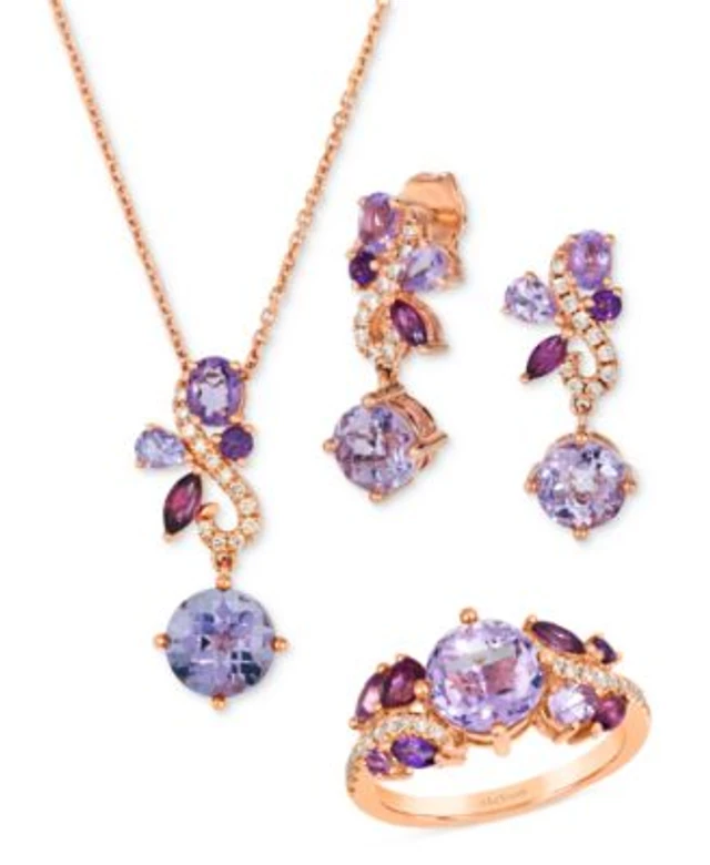 Le Vian Multi Gemstone Diamond Pear Halo Pendant Earrings Ring 14k Rose Gold