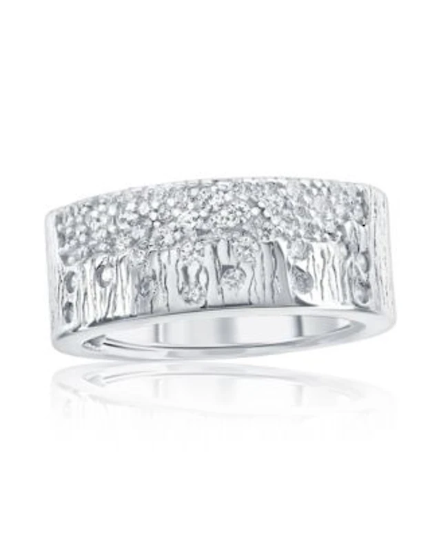 Suzy Levian New York Pave Cubic Zirconia Silver Puff Woven Motif Extra Wide Band Ring