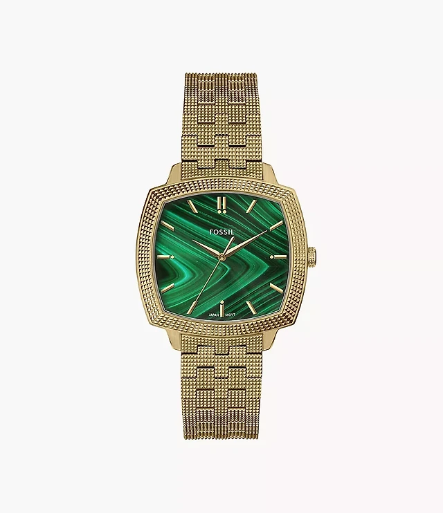 Nick Jonas x Fossil 18K Gold Plated Machine Luxe Malachite Three-Hand Stainless Steel Watch