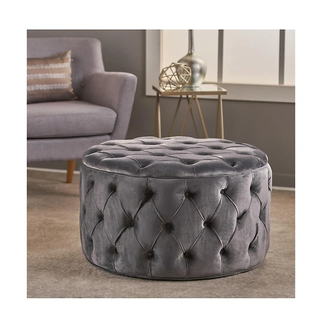 Round Velvet Ottoman Upholstered Footstool for Living Room or Bedroom Soft Polyester Fabric Comfortable Seating Option-The Pop Home