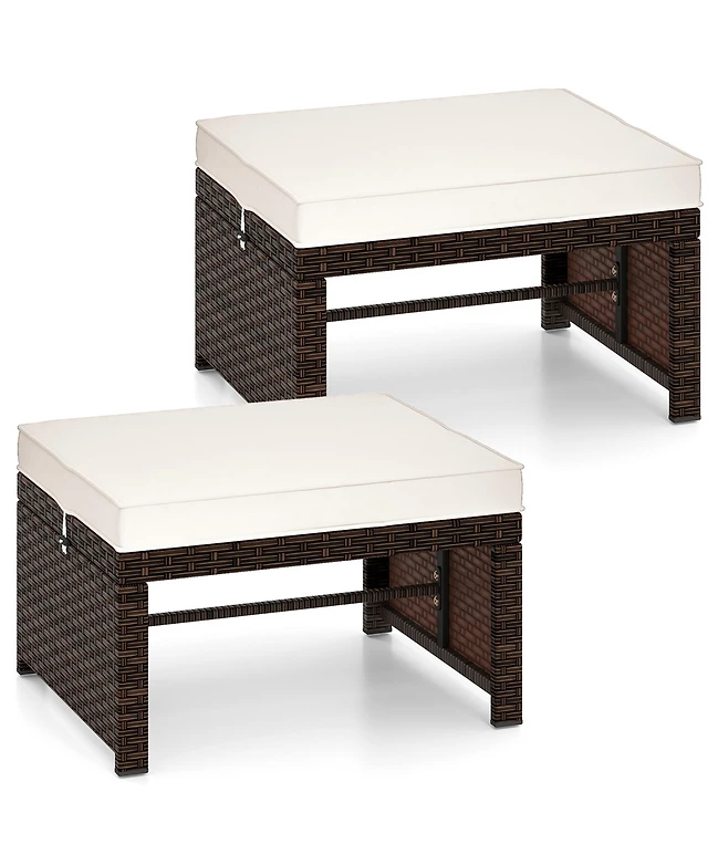 Gymax Set of 2 Patio Pe Rattan Ottomans w/ Soft Zippered Cushions for Deck Outdoor