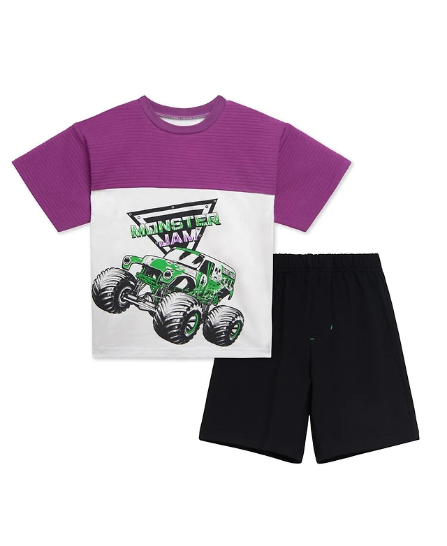 Monster Jam Boys Grave Digger Ottoman Ribbed T-Shirt and French Terry Shorts Outfit Set