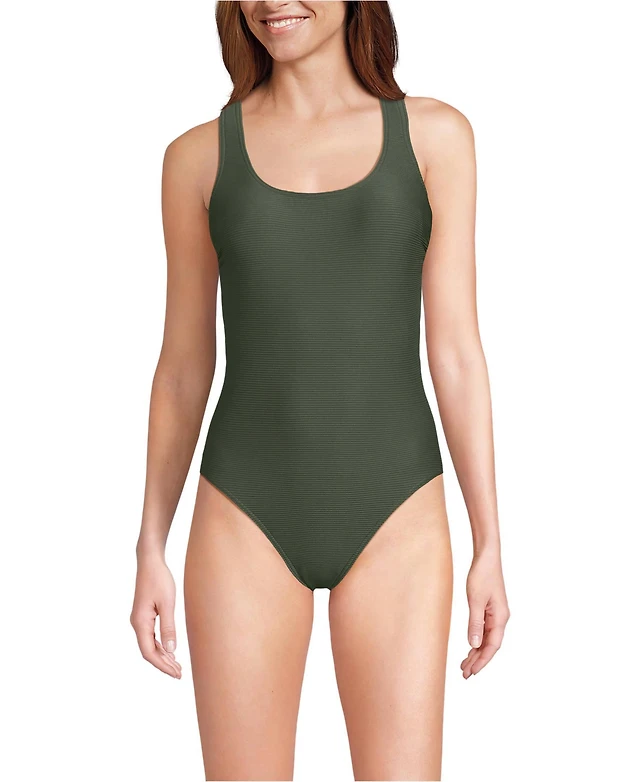 Lands' End Women's Tugless Ribbed X-Back One Piece Swimsuit