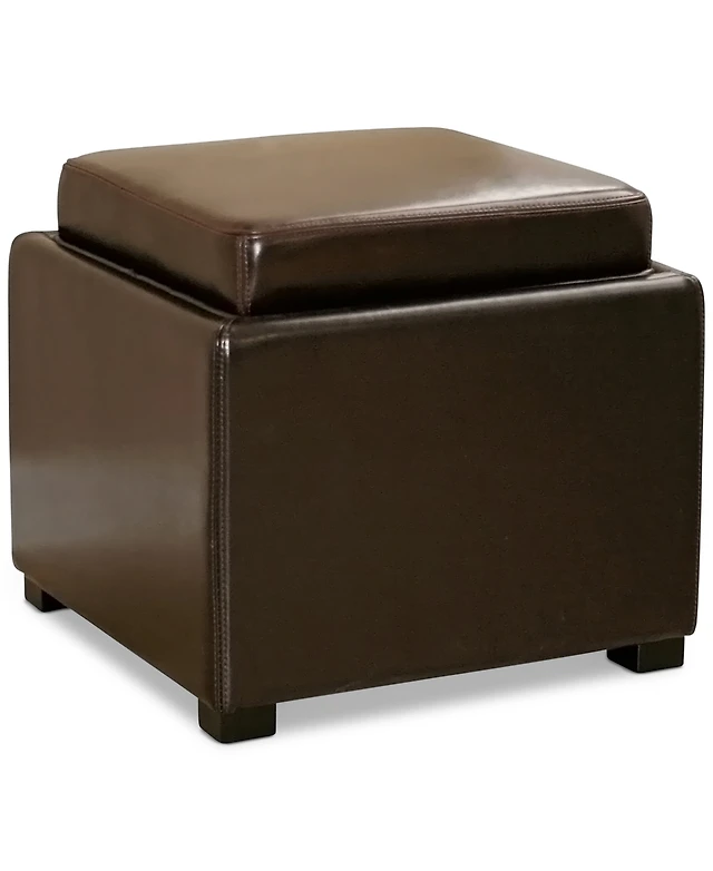 Streamdale Contemporary Faux Leather Tufted Ottoman with Open Shelf