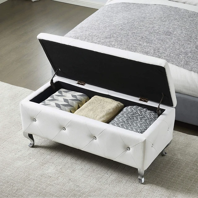 Ornavo Home Foldable Tufted 43 Inch Long Linen Bench Storage Ottoman with Legs