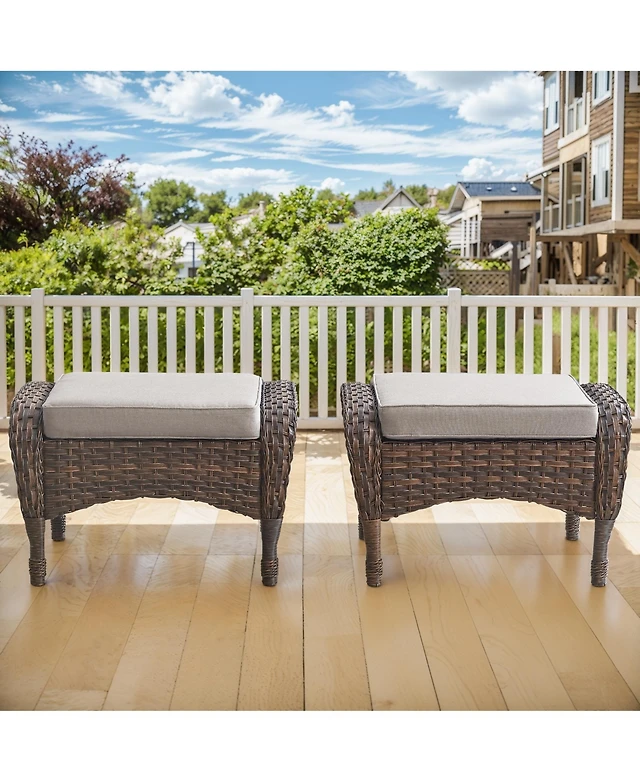 Gymojoy U-Frame Pe Wicker Outdoor Ottoman with Olefin Cushions (Set Of 2