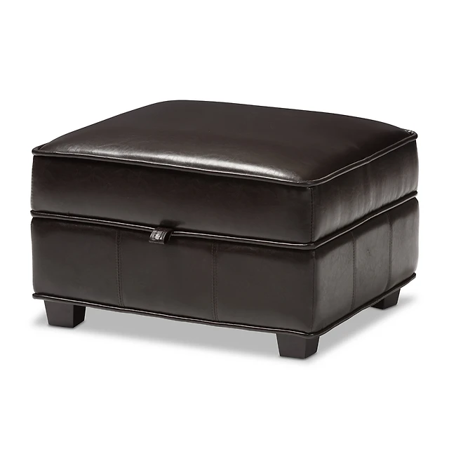 Baxton Studio Agustus Brown Leather Storage Ottoman