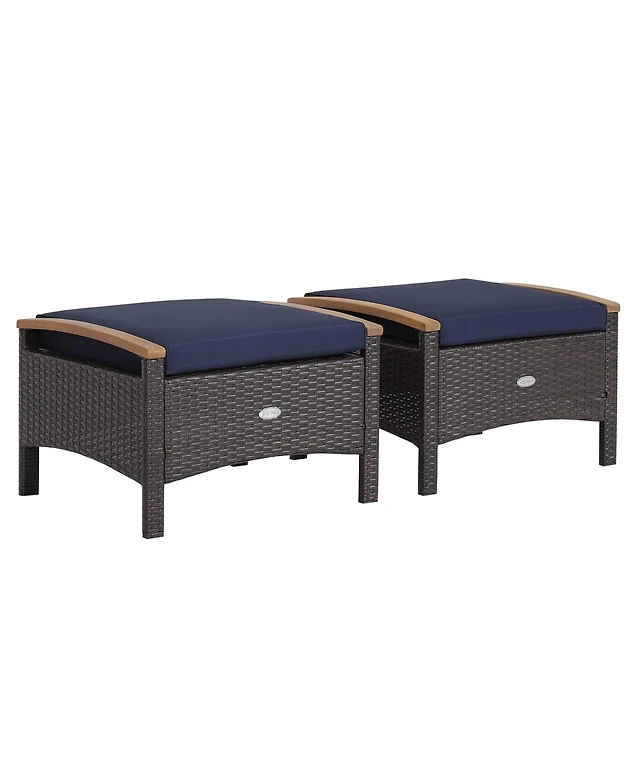 2PCS Patio Rattan Ottoman Cushioned Seat